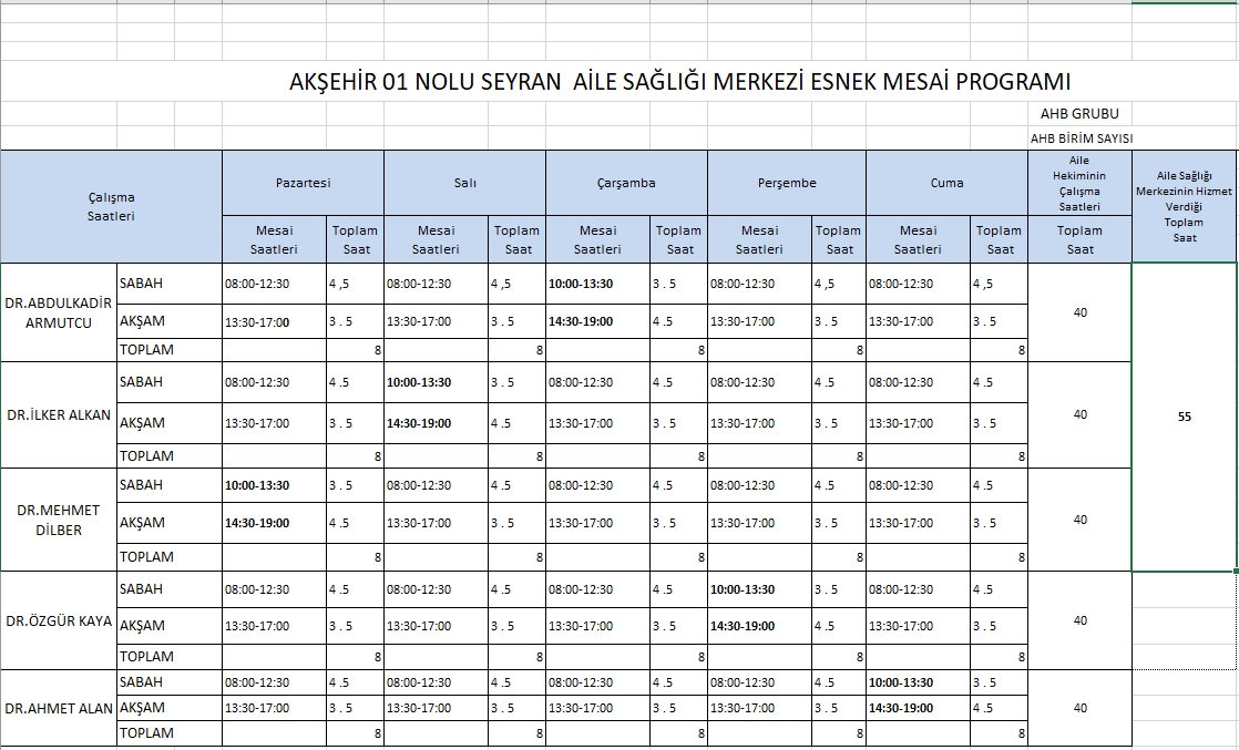 Çalışma Saatlerimiz